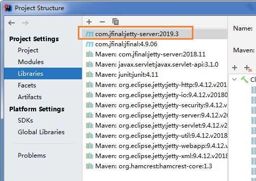 还有一点不同的是,Jetty是一种嵌入式服务器,Tomcat要单独运行,但Jetty可以直接集成到代码里。安装方法也相对简单,通过maven就行。如下图所示,