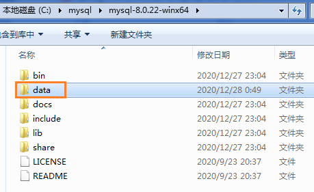 功能是:在 C:\mysql\mysql-8.0.22-winx64\ 目录下生成data目录