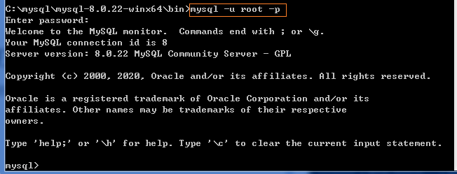 cd C:\mysql\mysql-8.0.22-winx64\bin