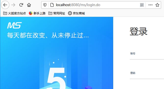 在浏览器输入 http://localhost:8080/ms/login.do 终于可以看到熟悉的登录框啦。