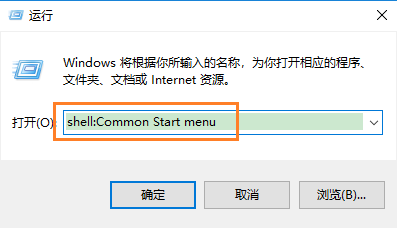 1.按win+R打开运行窗口,输入shell:Common Start menu。