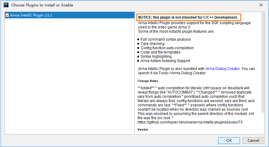 会自动搜索到一个插件, 可惜,这个插件已说明不支持C/C++.