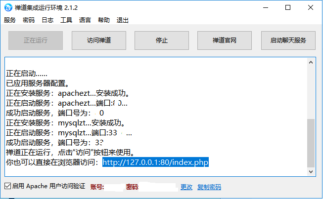 可以直接在浏览器访问:http://127.0.0.1:80/index.php,就可以进登陆界面了。