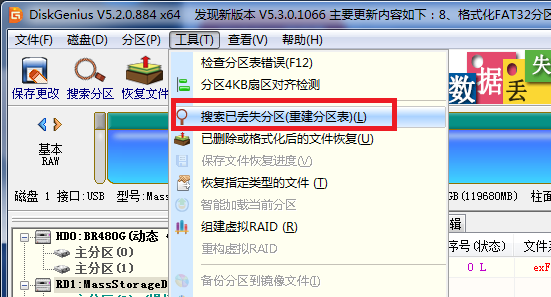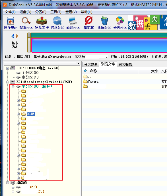 所以,还是用其它的功能,工具--》"搜索已丢失分区",也可以读SD卡的内容。(这个是收费功能,不要用)