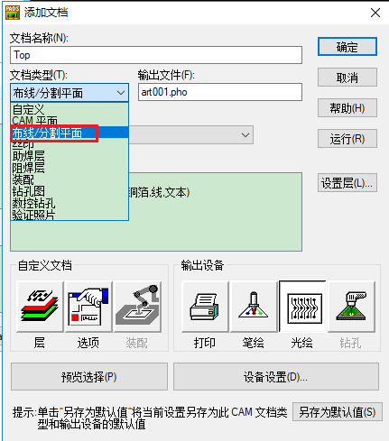 平面层有两种:CAM平面和布线/分割平面,CAM平面也称为负片,一般在多层板中使用到,如果在多层板中分配了CAM平面,就需要选择该平面。一般我们使用的是布线/分割平面。