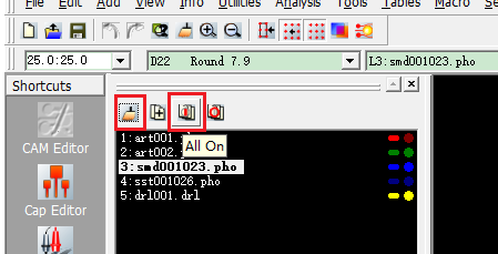 用类似上一步的方法加入,如果是双层板,一般是两个丝印文件,如果底层没有丝印,也是可以省掉一个文件的。