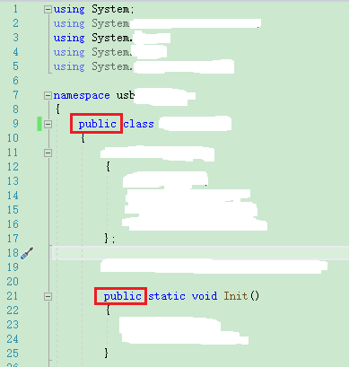 在对外的类和函数前面加上 public,才能被调用,如下:
