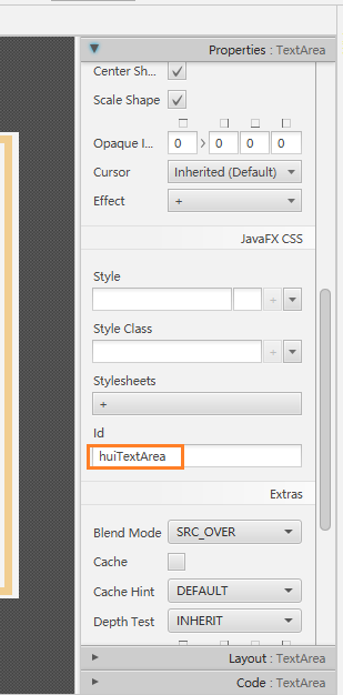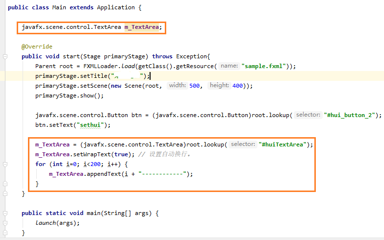 javafx.scene.control.TextArea ta = (javafx.scene.control.TextArea)root.lookup("#huiTextArea");