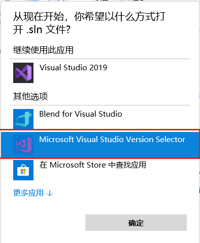 方法:选中.sln文件,右键 => 打开方式 => 选择其他应用 => 双击 Microsoft Visual Studio Version Selector