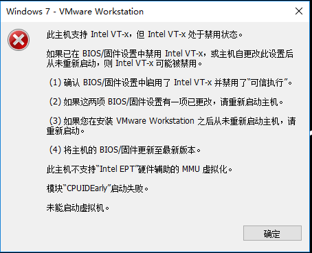 解决方法:修改BIOS(Intel Virtualization Technology)设置,同 wmware的解决方法一样。