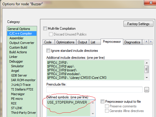 (1)Copy a demo project "C:\Program Files (x86)\IAR Systems\Embedded Workbench 6.0\arm\examples\ST\STM32F10x\IAR-STM32F107VC-SK\Buzzer" and then modify from it.