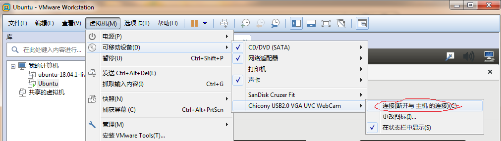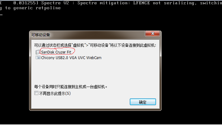 2.启动虚拟机后,会提示U盘已发现,如下