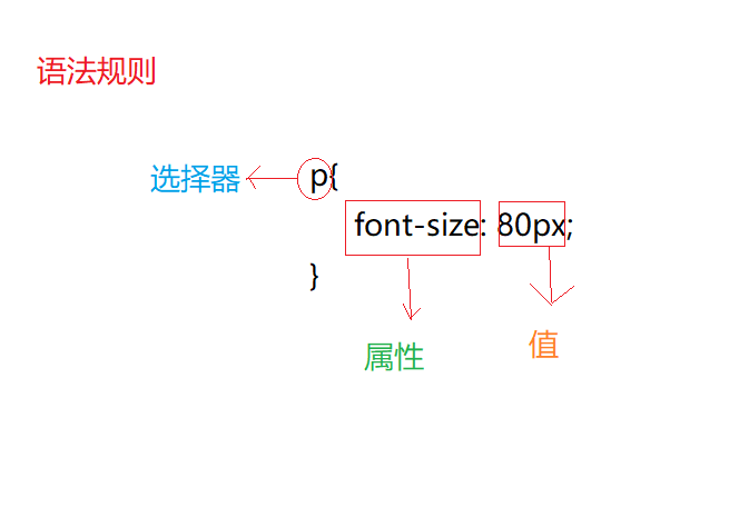 属性(property):是你要改变的样式名,并且每个属性都有一个值,属性和值被冒号分开,并由花括号包围,这样就组成了一完整的样式声明(declaration),例如:p{color:blue}