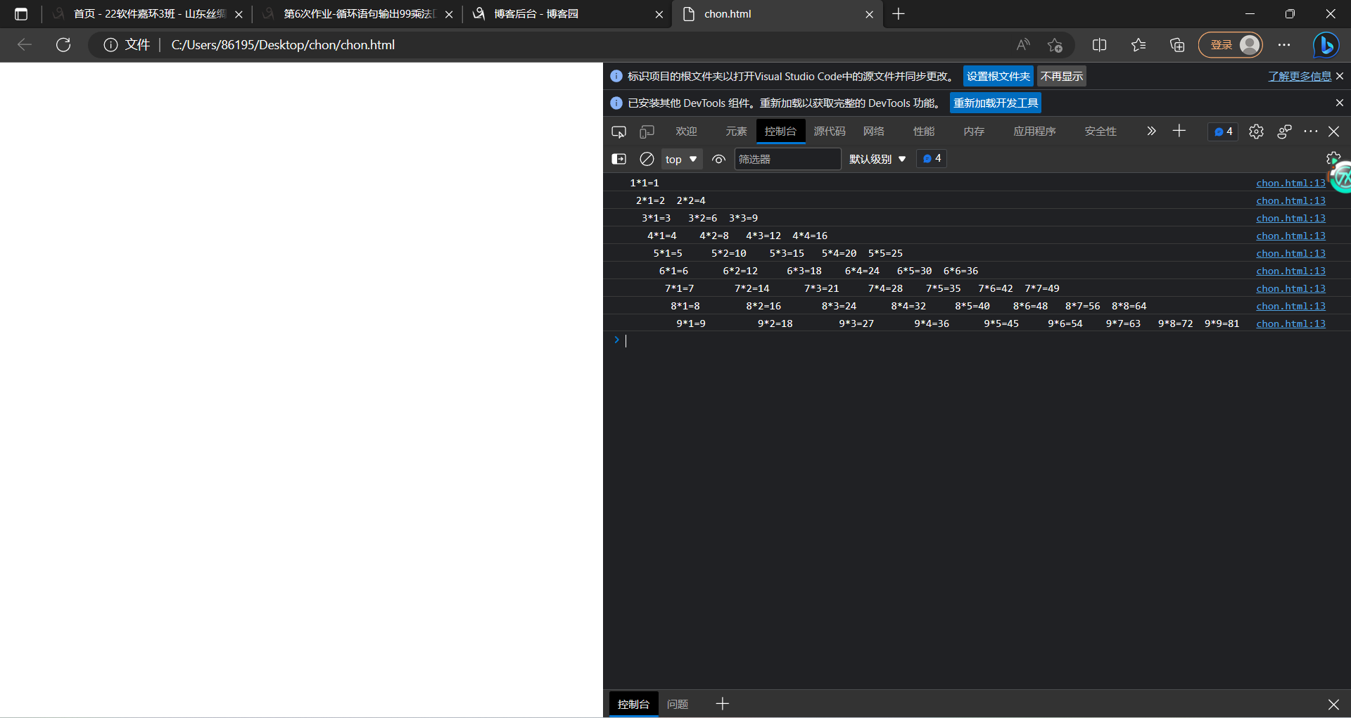 | 这个作业的目标 | 第6次作业-循环语句输出99乘法口诀表 |