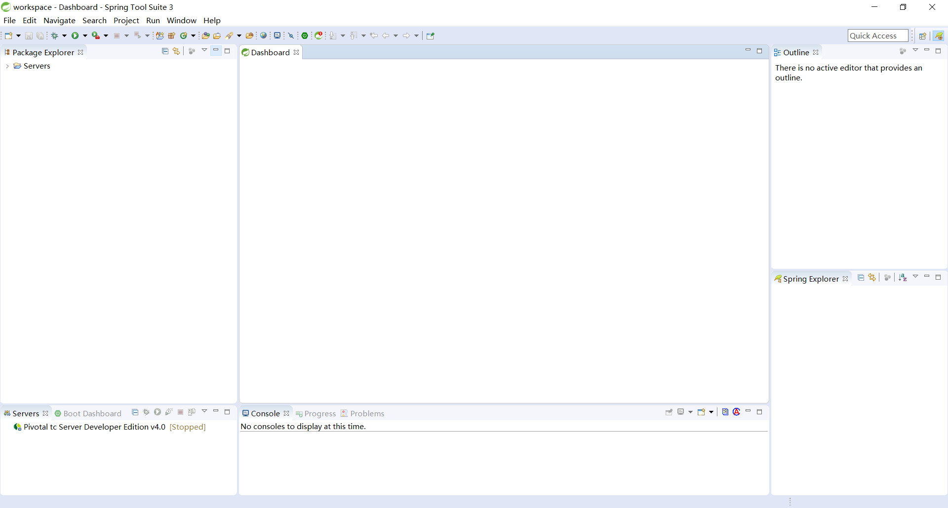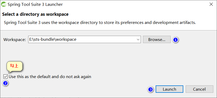 下载好STS的压缩包(zip包)后,直接解压到当前文件夹,解压之后会出现一个sts-bundle文件夹(sts-bundle文件夹的路径不要包含中文字符或者空格),在\sts-bundle\sts-3.9.10.RELEASE下点击STS.exe启动STS工具。第一次启动之后会出现下图所示对话框: