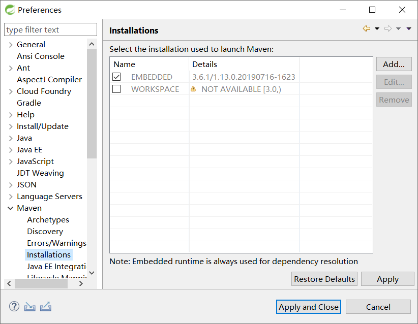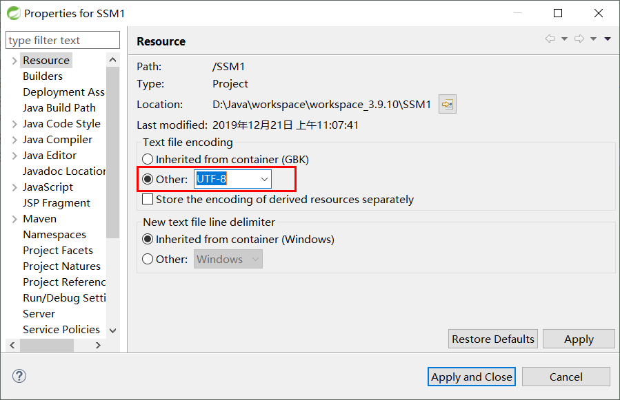 编码格式选择UTF-8,点击Apply and Cancel按钮