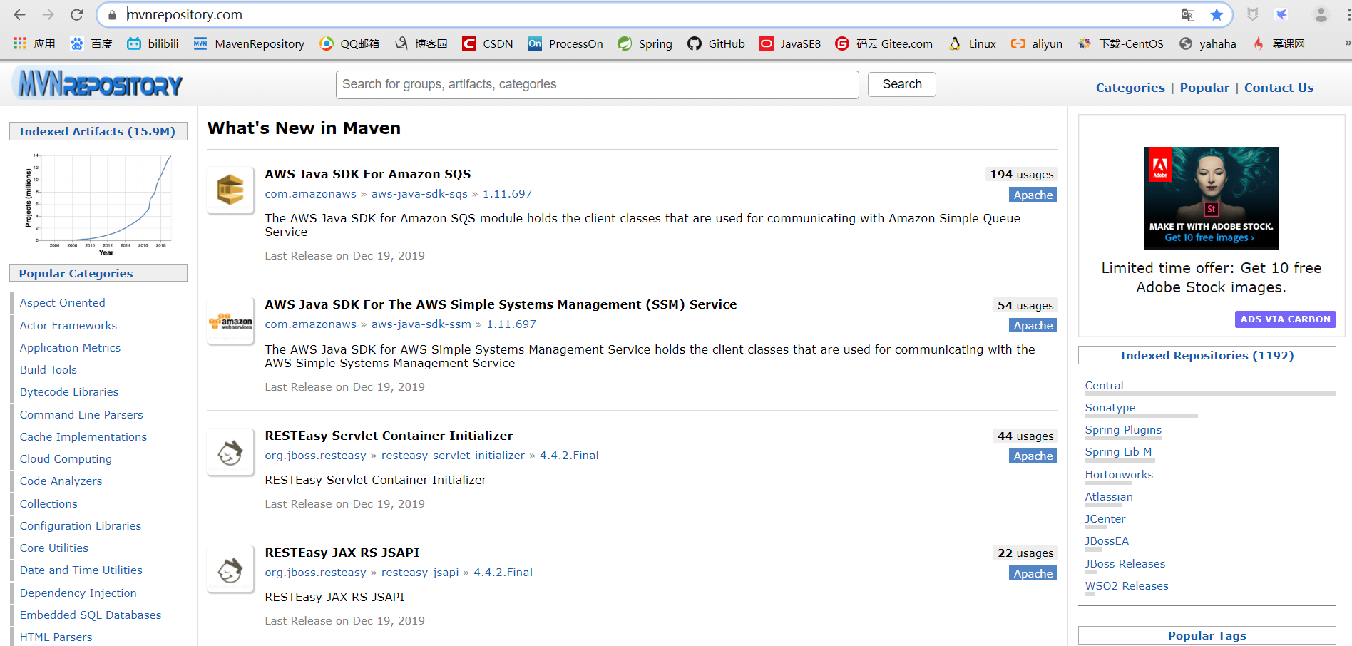 这里介绍一个网站 https://mvnrepository.com/ ,依赖的坐标都可以在这个网站上找到,打开网站如下图: