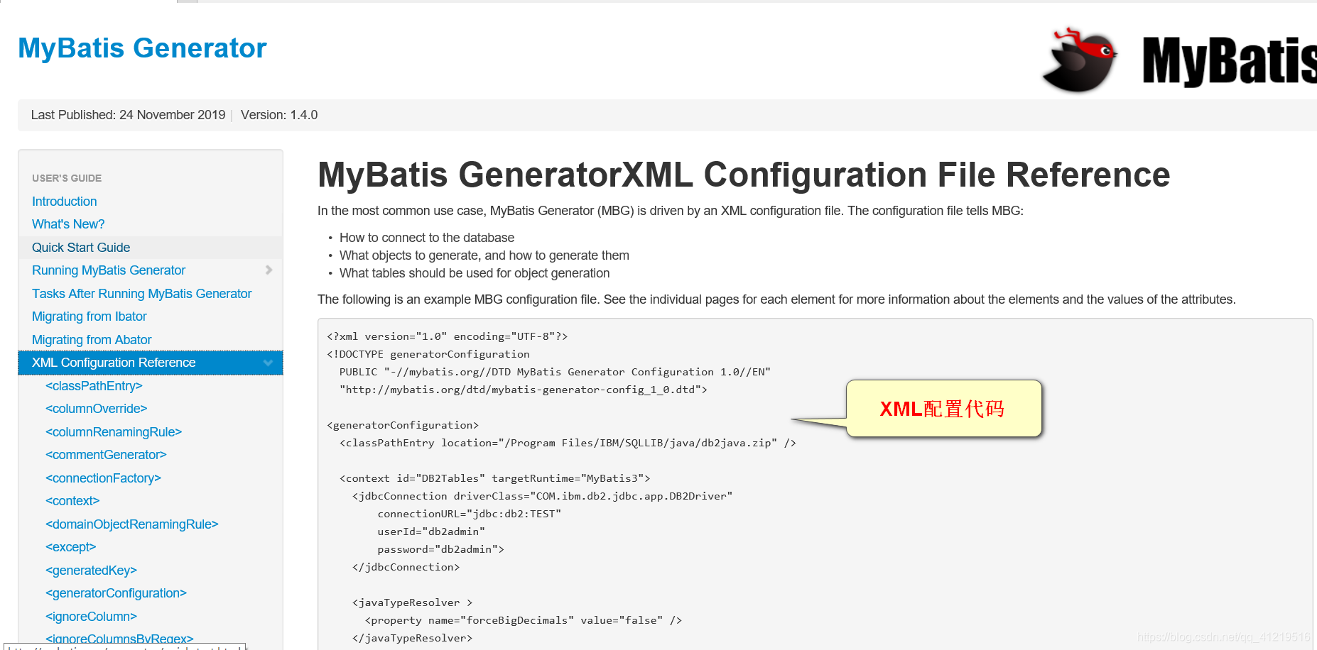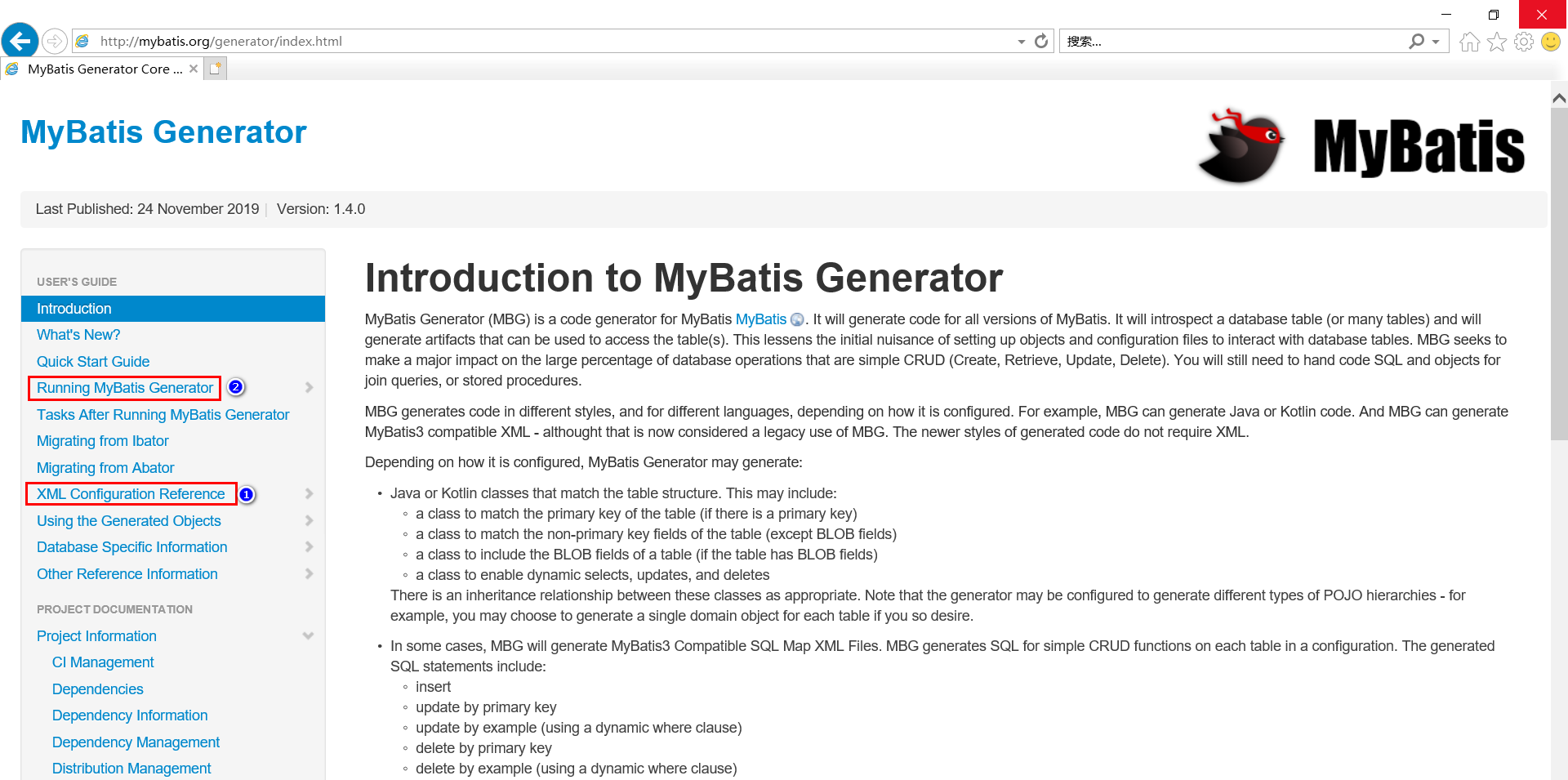 这个mybatis-generator如何使用呢?我们先去看一下它的文档:http://mybatis.org/generator/index.html