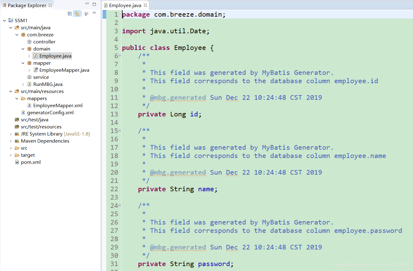 Employee.java是根据我们springdemo数据库中Employee表创建出来的java对象,并提供了Getter和Setter方法。
