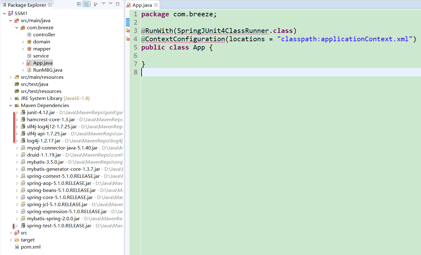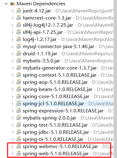 贴了注解之后,我们发现2个注解都报错了,这是由于它没找到所依赖的jar包,我们先展开Maven Dependencies目录,如下图: