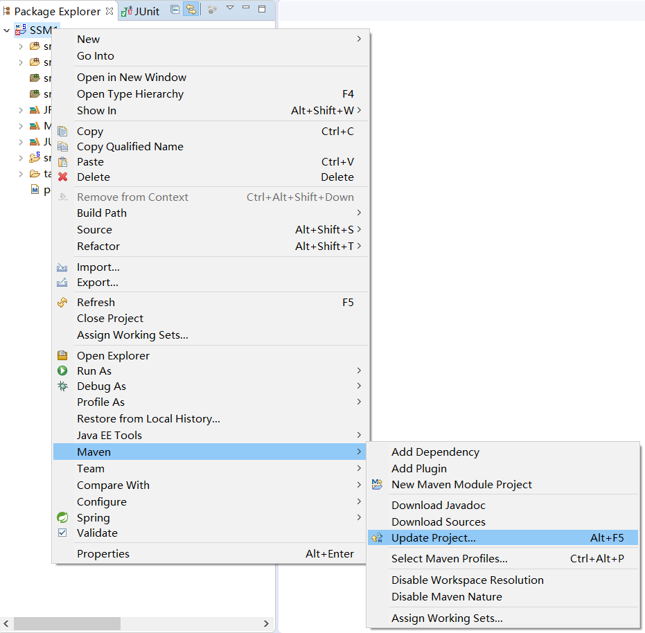 然后,开始运行,选中testSelectAll()方法,鼠标右键,Run As,2 Junit Test