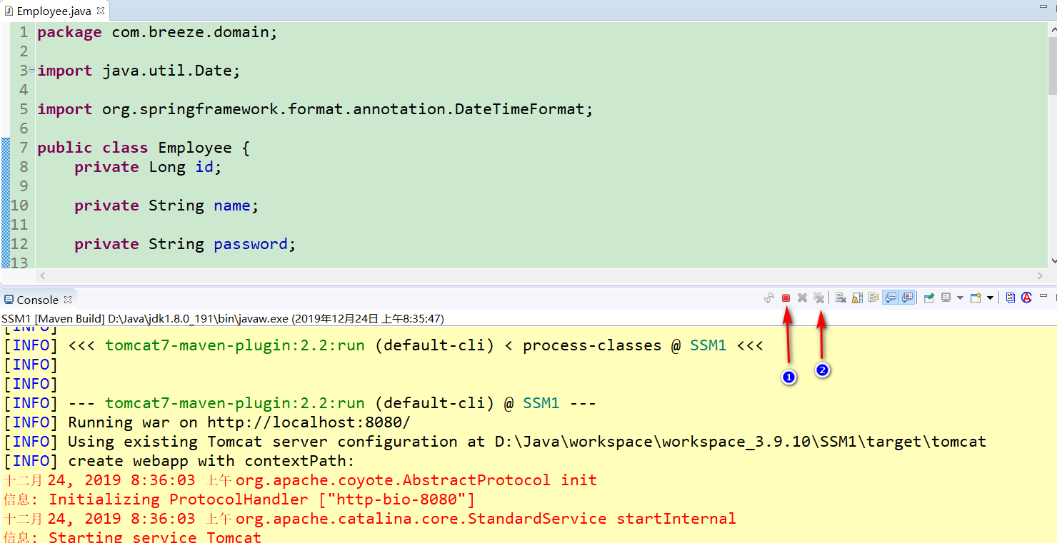 在Controller包下新建一个Class,命名为EmployeeController,EmployeeController.java里面的代码如下: