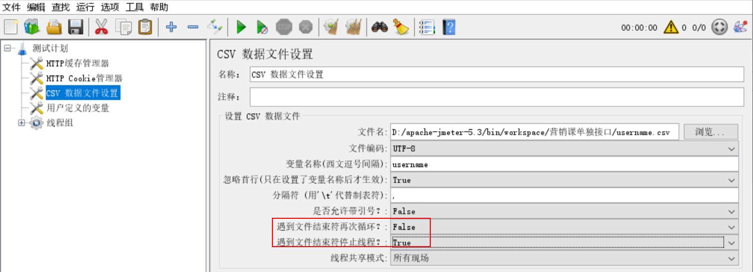 遇到文件结束符再次循环:True表示在施压过程中循环使用这些数据