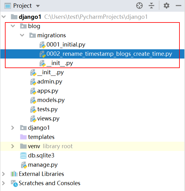 在该app下建立 migrations目录,并记录下你所有的关于modles.py的改动,比如0001_initial.py, 但是这个改动还没有作用到数据库文件
