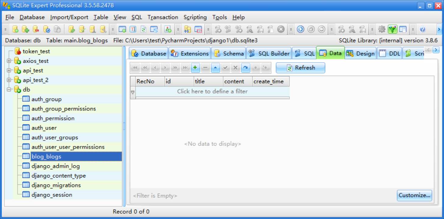 django-admin startproject lizi_auto_test . (默认当前目录为django根目录) 启动项目:python manage.py runserver (ip:端口号可选) 项目地址:http://127.0.0.1:8000/ (默认) 后台地址:http://127.0.0.1:8000/admin 同步数据库:python manage.py migrate (默认是sqlite数据库) 创建后台用户:python manage.py createsuperuser 登录后台:admin admin