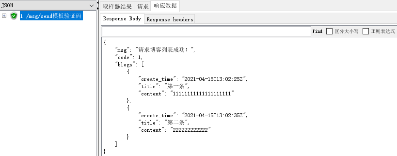 from django.http import HttpResponse, JsonResponse from blog.models import Blogs # Create your views here. def blog_list(request): blogs_obj = Blogs.objects.all() # 获取所有数据 blogs = [] for blog in blogs_obj: # 可迭代 blogs.append({"title":blog.title, "content":blog.content, "create_time":blog.create_time}) resp = { 'code': 1, 'blogs': blogs, 'msg': '请求博客列表成功!' } return JsonResponse(resp, safe=False) # JsonResponse返回一个非字典的类型时,safe参数要设置为False