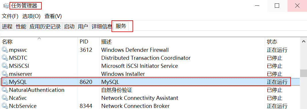 - 启动服务:net start mysql(停止服务:net stop mysql)