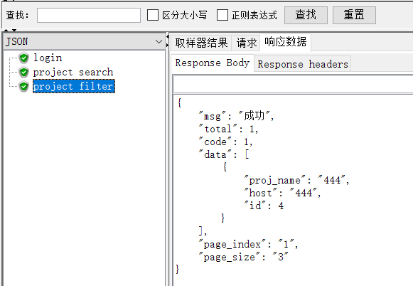 # 查询全部 class ProjectList(View): @login_check def get(self, request): page_index = request.GET.get('page_index', 1) page_size = request.GET.get('page_size', 10) print(page_index) print(page_size) # 全部查询 result = do_get_all_data(Project, page_index=page_index, page_size=page_size) return result # 模糊查询 class SearchProject(View): @login_check def get(self, request): page_index = request.GET.get('page_index', 1) page_size = request.GET.get('page_size', 10) search_field = request.GET.get('proj_name') print(page_index) print(page_size) print(search_field) search_list = ['proj_name'] # 模糊查询 result = do_search_request(request, search_field, search_list, Project, page_index=page_index, page_size=page_size) return result # 精准查询 class FilterProject(View): @login_check def get(self, request): page_index = request.GET.get('page_index', 1) page_size = request.GET.get('page_size', 10) print(page_index) print(page_size) filter_list = ['proj_name'] # 模糊查询 result = do_filter_request(request, filter_list, Project, page_index=page_index, page_size=page_size) return result