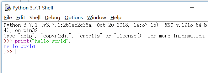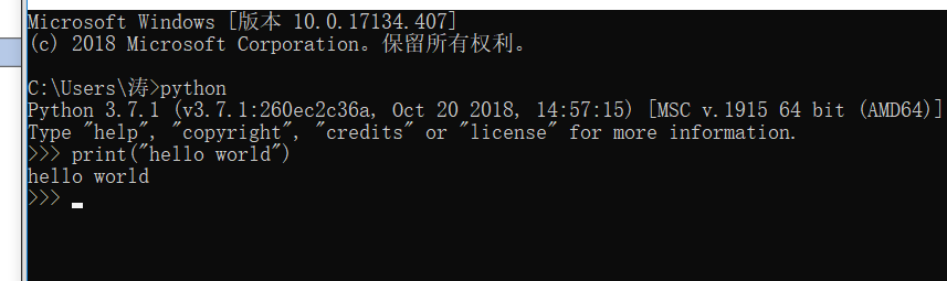 设置好环境变量后,输入python,回车,然后print("hellow world")