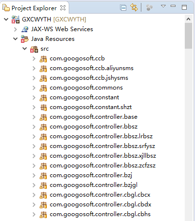 Eclipse默认的文件目录为Flat格式。这样的目录结构使我们可以清晰的一览所有根目录下的方法。但当文件过多时,便会给我们定位某一个方法造成麻烦了。(Flat格式目录结构如下图)