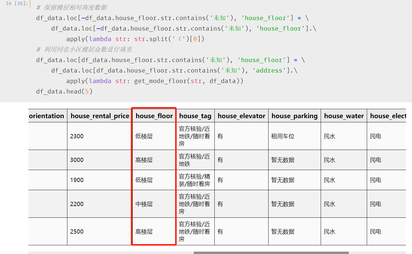 像地址、房租价格、面积这些,是我们重点要分析的特征,而像房屋用水、用电、采暖这些就属于次要特征,可以进行辅助参考