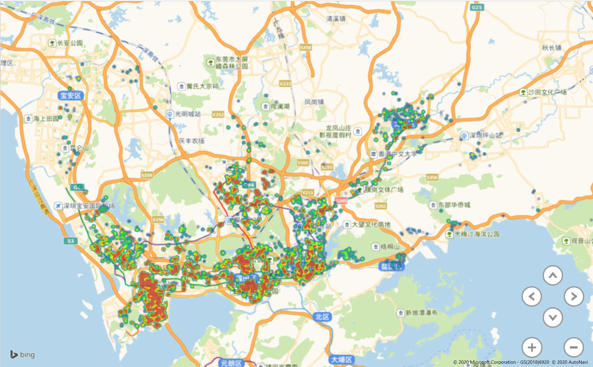 这是福田区和罗湖区的部分截图,图中红色的点表示单价较高的点