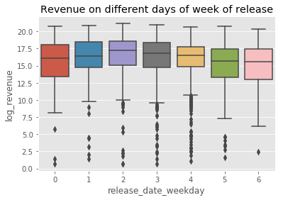 发现:周一到周三发布的电影很多是高票房的,周六发行的电影票房就很低了。