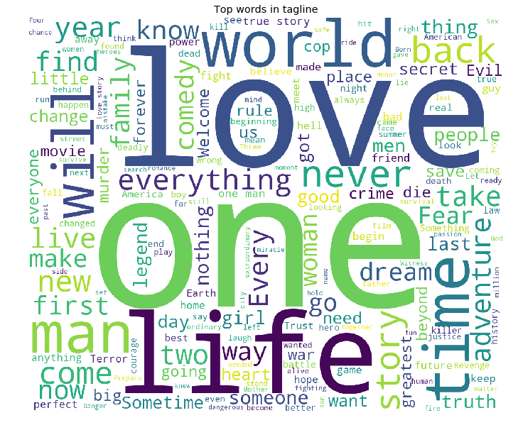 电影介绍tagline分析,分析出现频率最高的词汇: