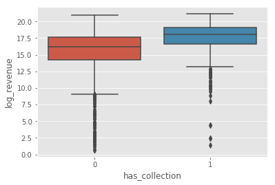sns.boxplot(x='has_collection',y='log_revenue',data=train)