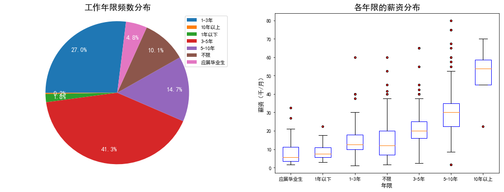 - 企业要求3-5年经验的最多,其次是1-3年的,要求1年以下以及10年以上的很少