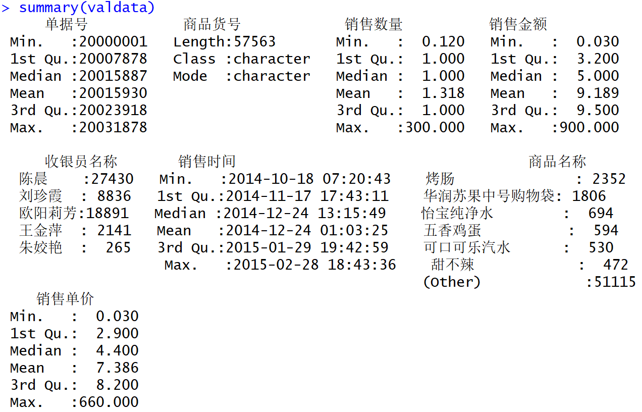 > valdata<-subset(valdata,valdata$销售金额>0)