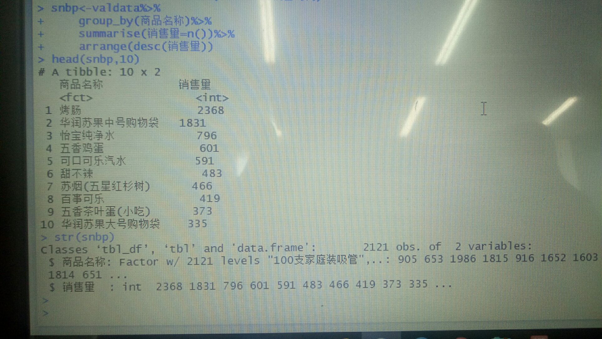 > data<-subset(data,data$商品名称!="合计分舍去"&data$商品名称!="积点印花")