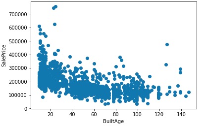plt.xlabel("BuiltAge")