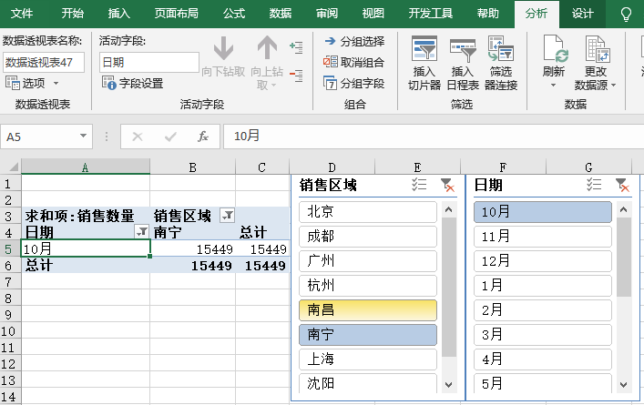 | 14. 显示需要的行或列总计数:数据透视表-分析-总计-仅对行、列启用等 |