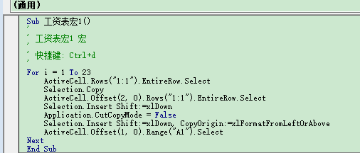 3. 执行宏的方式:(1)快捷键(如上面设置的Ctrl+d) (2)开发工具-插入表单控件-按钮-选择刚才录制的宏,然后按按钮进行操作(3)修改宏代码:visual basic-工具-宏:修改代码,可以给予for循环语句……next,让执行宏一次性完成 ![]() |