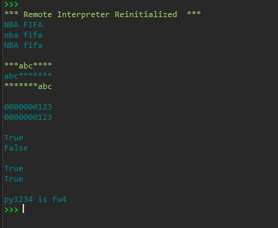 #task1:字符串的基础操作(课堂上没有演示的一些方法) 实验内容 x = 'nba FIFA' print(x.upper()) #字符串转大写 print(x.lower()) #字符串转小写 print(x.swapcase()) #字符串大小写翻转 print() x = 'abc' print(x.center(10, '*')) #字符串居中,宽度10列,不足左右补*号 print(x.ljust(10, '*')) #字符串居左,宽度10列,不足右边补*号 print(x.rjust(10, '*')) #字符串居右,宽度10列,不足左边补*号 print() x = '123' print(x.zfill(10)) #字符串宽度10列,不足左边用0填充 x = 123 print(str(x).zfill(10)) #把int类型转化为字符串类型后,对字符对象使用str.zfill()方法 print() x = 'phone_number' print(x.isidentifier()) #判断字符串是否是python合法标识符 x = '222.test' print(x.isidentifier()) print() x = ' ' print(x.isspace()) #判断字符串是否是空白符(包括空格、回车、Tab键) x = '\n' print(x.isspace()) print() x = 'python is fun' table = x.maketrans('thon', '1234') #为字符串x创建一个字符映射表,字符thon分别映射到字符1234 print(x.translate(table)) #根据字符映射表table对字符串对象x中的字符进行转换