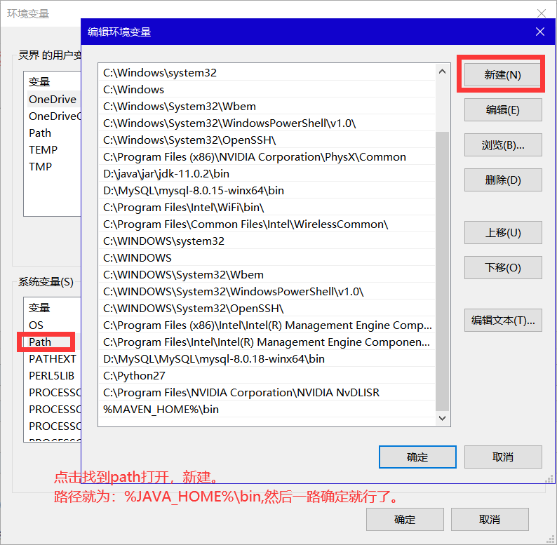 点开path,新建,变量名为:%MAVEN_HOME%\bin