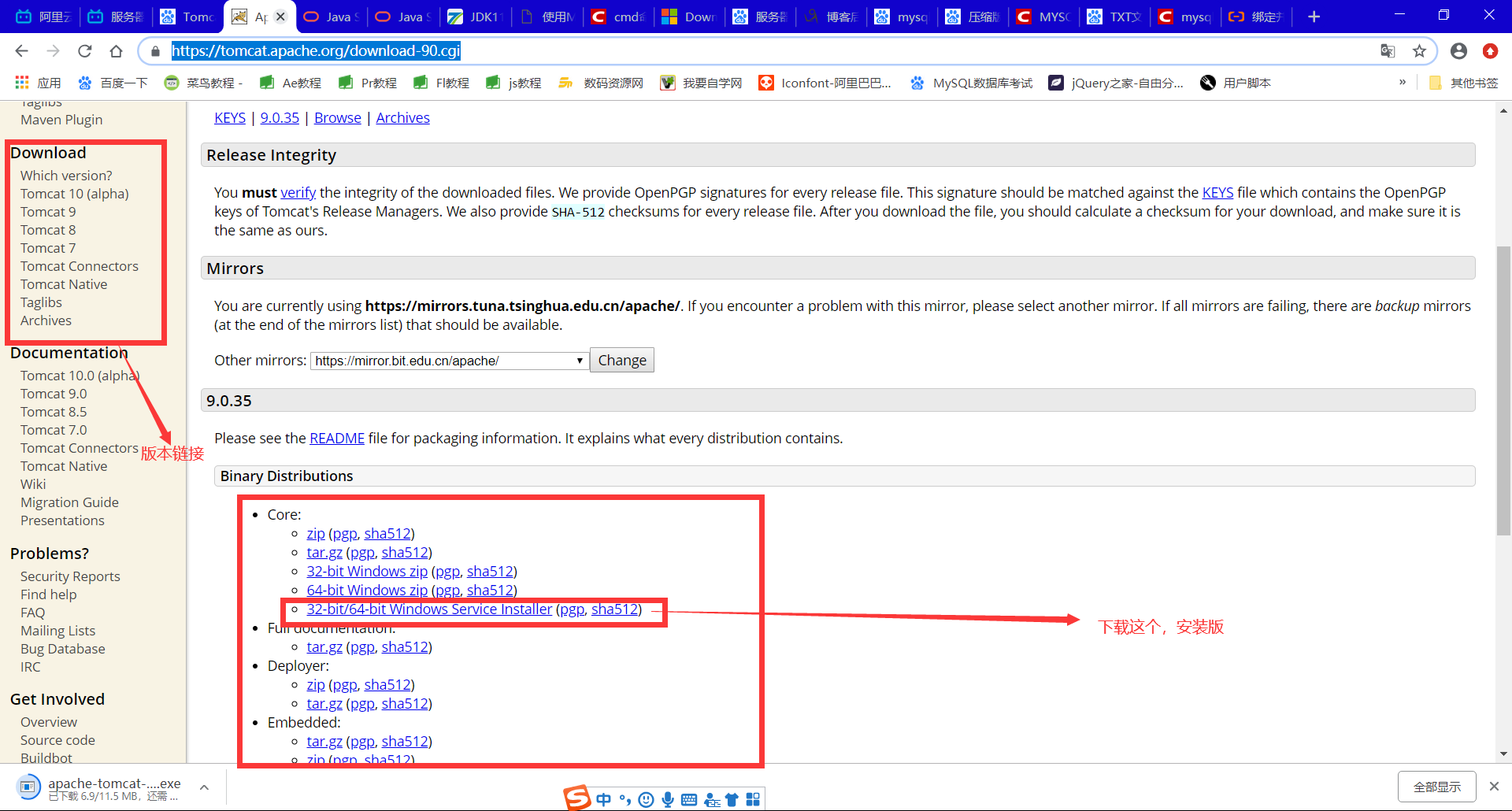 1.Tomcat下载地址(Tomcat9下载),安装步骤省略,一直下一步就好了。