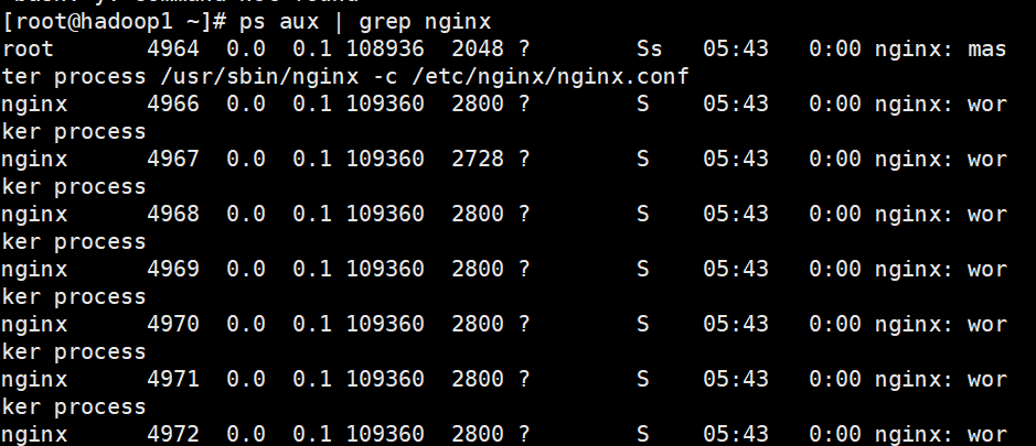 6.查看Nginx进程,如果出现以下一堆,就代表安装成功啦!