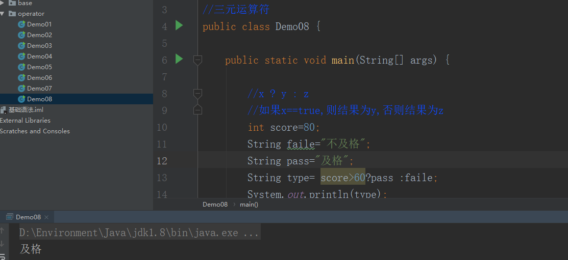 三元运算符:X ? Y : Z 其中X是一个boolean 表达式,如果为真(true)则执行 Y,如果为假则执行(false)